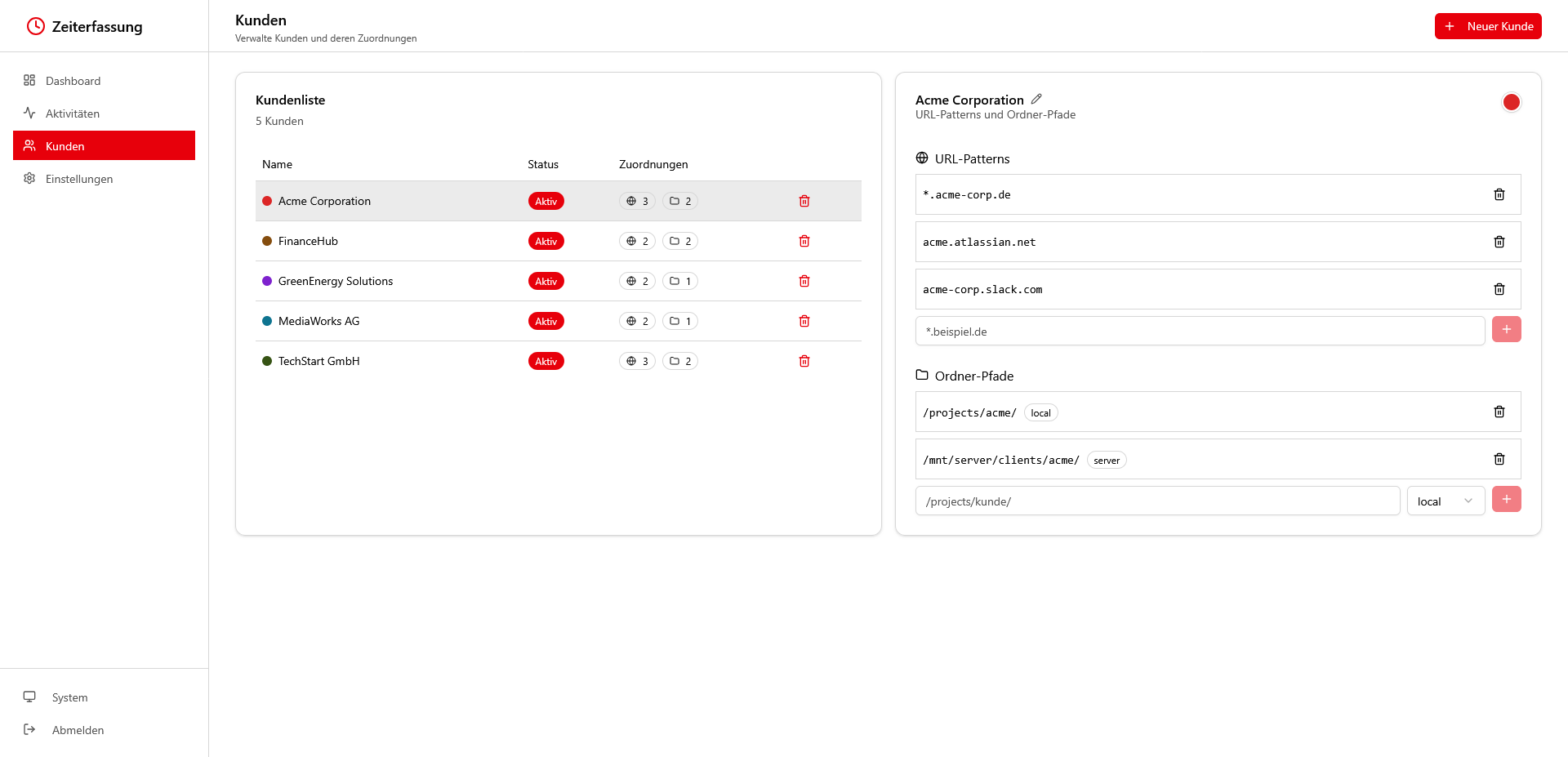 👉 Kunden werden über URL‑Muster und Projektpfade erkannt. Ein Eintrag wie acme.atlassian.net oder ein lokaler Ordnerpfad reicht, um Aktivitäten später eindeutig zuzuordnen ✅