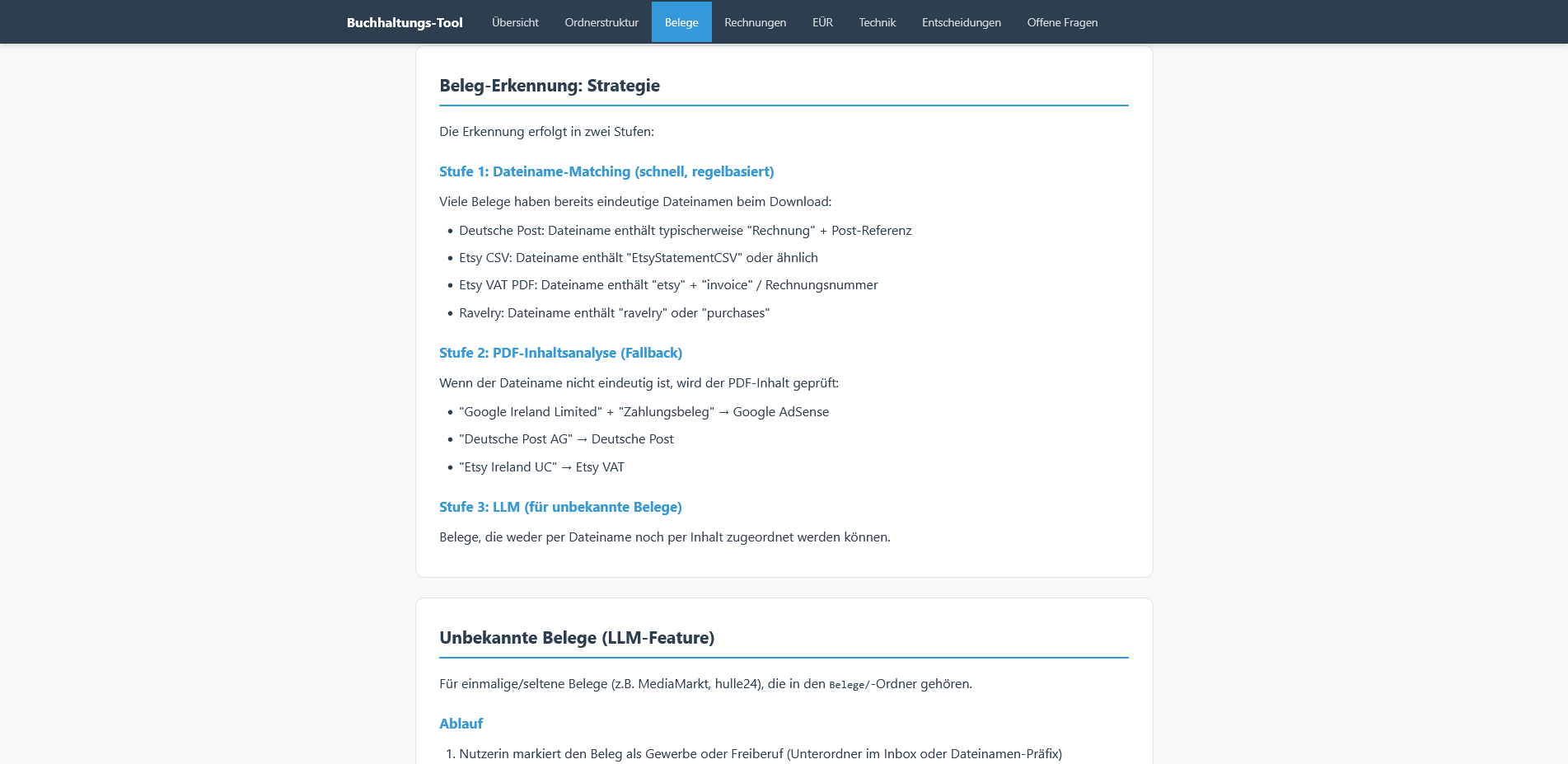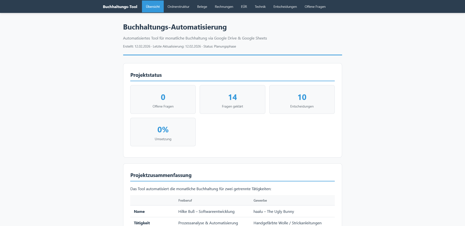 Projekt- und Wissensbasis: Eigene Steuer- und Buchhaltungsdokumentation plus strukturierte HTML-Projektdokumentation