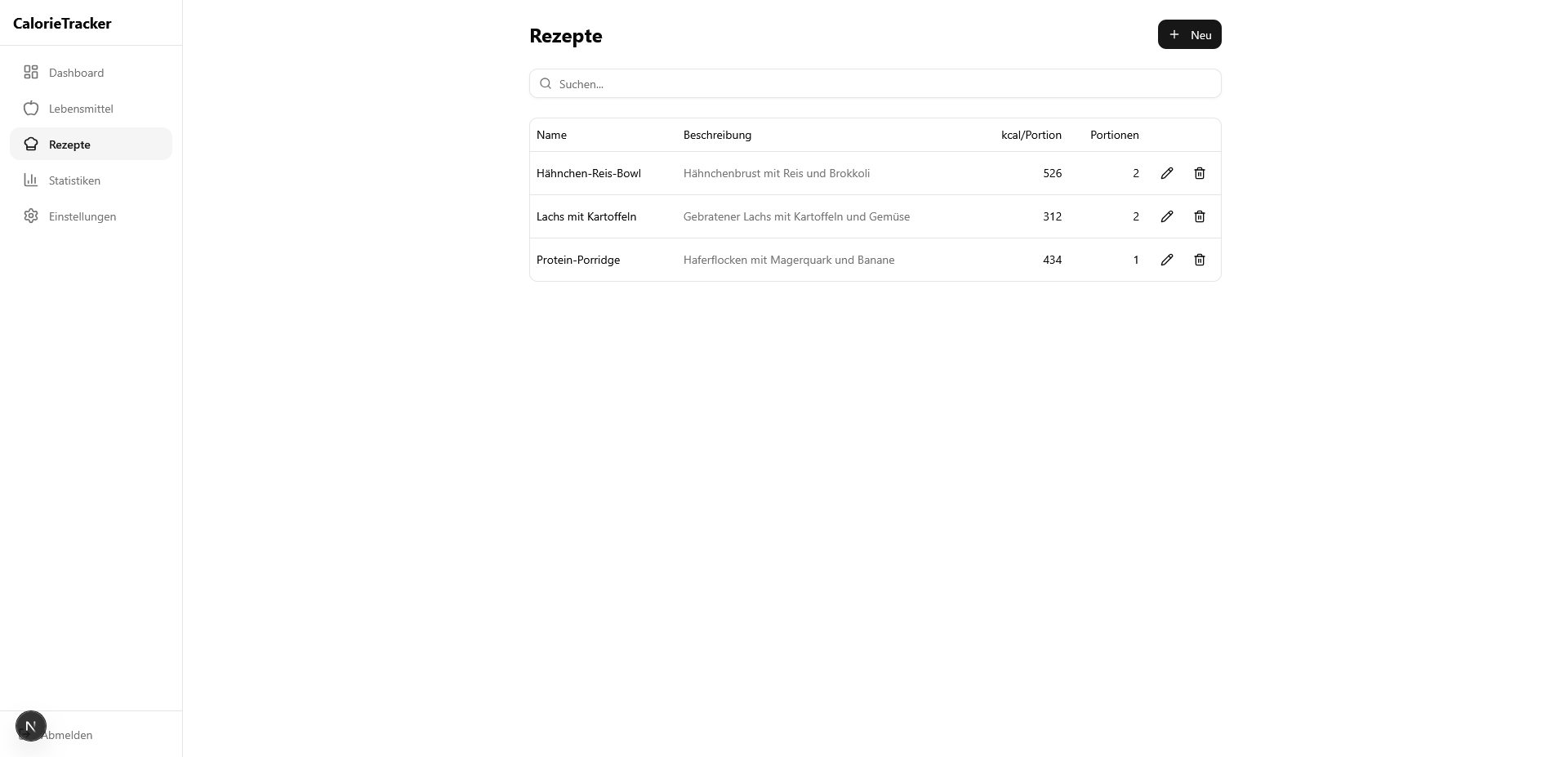 👉 Rezepte bestehen aus einzelnen Lebensmitteln und liefern automatisch Nährwerte pro Portion. Wer also das Lieblings‑Porridge zusammenklickt, kann später mit einem Tap „1 Portion“ hinzufügen, ohne Zutatenlisten zu durchforsten.