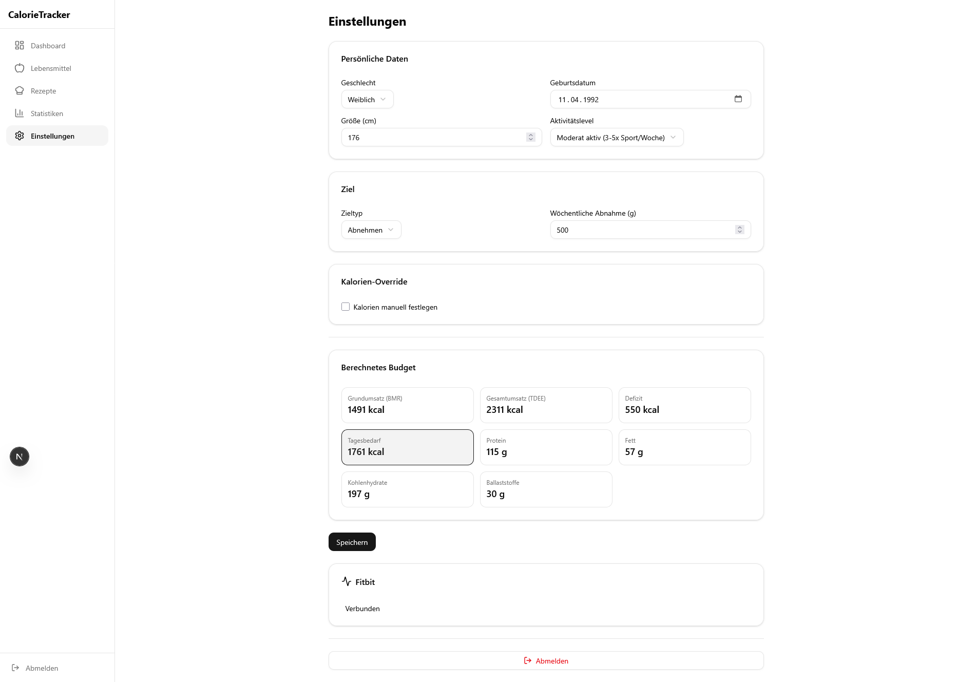 Automatische Berechnung von Tageskalorien und Makros